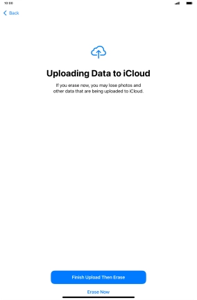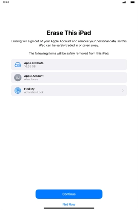Key in the password for your Apple ID and press Turn Off. Wait a moment while the factory default settings are restored. Follow the instructions on the screen to set up your tablet and prepare it for use.