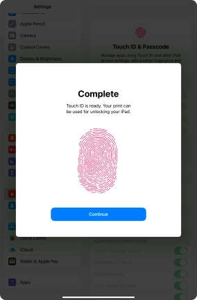 Press Continue. If you haven't previously selected a lock code, key in a code of your own choice twice.