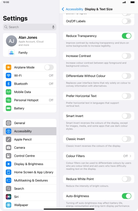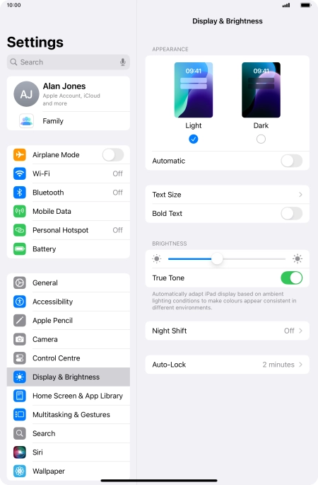 Press the indicator next to "Auto-Brightness" to turn automatic brightness on or off.