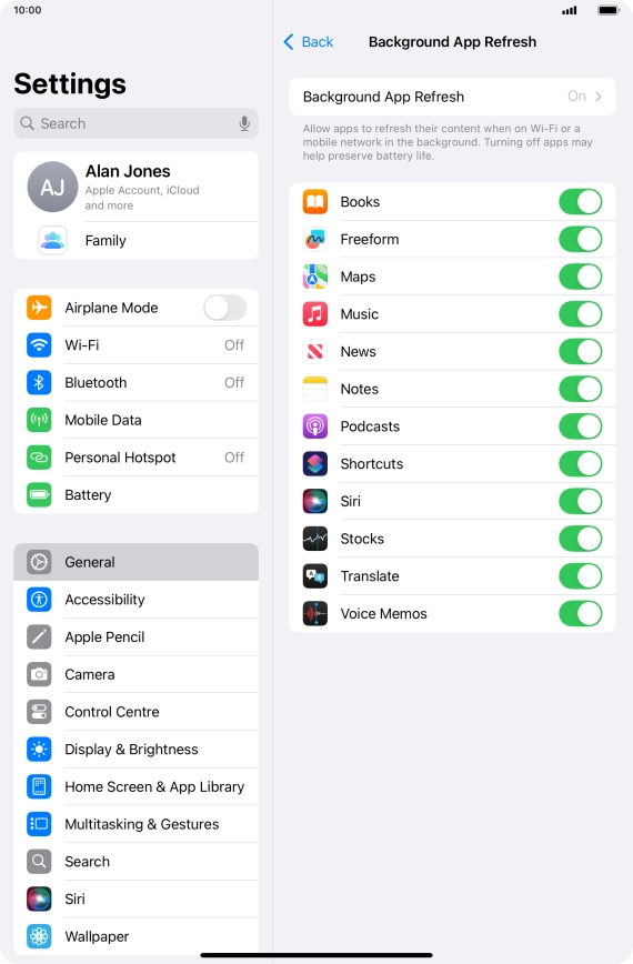 2 Turn background refresh of apps on or off