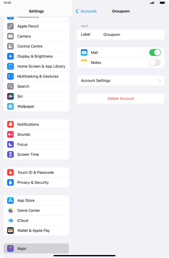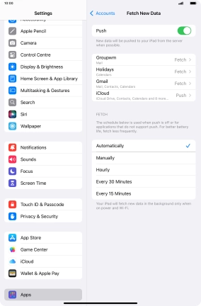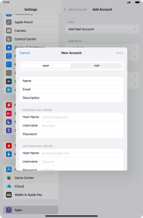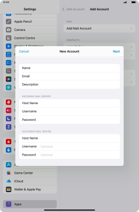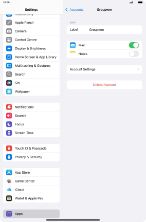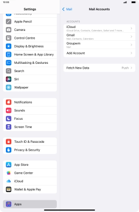 Press the required email account and follow the instructions on the screen to select settings for the specific account.