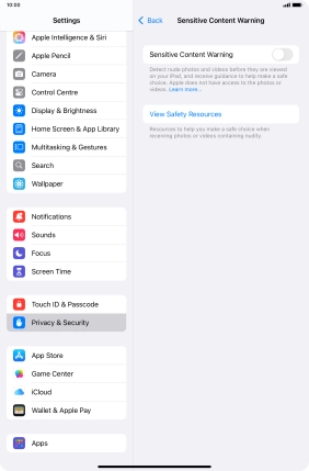 Turn Sensitive Content Warning on your Apple iPad mini (A17 Pro) iPadOS 18 on or off