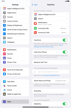 Select FaceTime settings on your Apple iPad mini (A17 Pro) iPadOS 18
