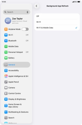 Select settings for background refresh of apps on your Apple iPad mini (A17 Pro) iPadOS 26
