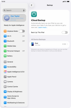 Back up the memory on your Apple iPad mini (A17 Pro) iPadOS 26 to iCloud