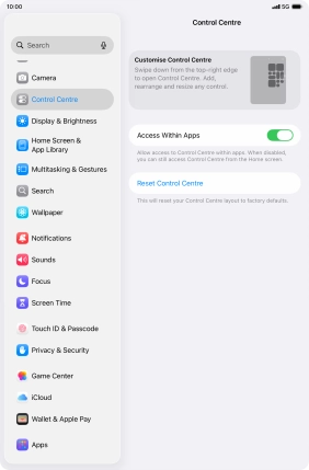 Select settings for Control Centre on your Apple iPad mini (A17 Pro) iPadOS 26