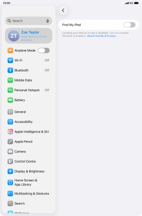 Find My iPad enables you to find your tablet if you lose it or you can lock it should it get stolen. To select settings for Find My iPad, you need to activate your Apple Account on your tablet.