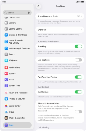 Press the indicator next to "FaceTime" to turn the function on or off.