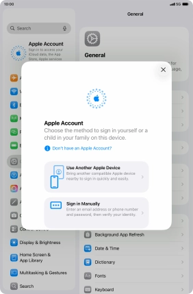 Activate Apple Account on your Apple iPad mini (A17 Pro) iPadOS 26