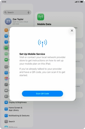 Place the QR code you've received inside the tablet camera frame to scan the code. If you’ve deleted your eSIM, you can re-add it using your existing QR code. If you’re having problems, see our FAQ.