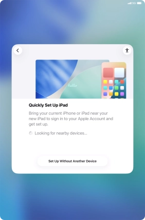 Follow the instructions on the screen to transfer content from another device running iOS 11 or later or press Set Up Without Another Device.