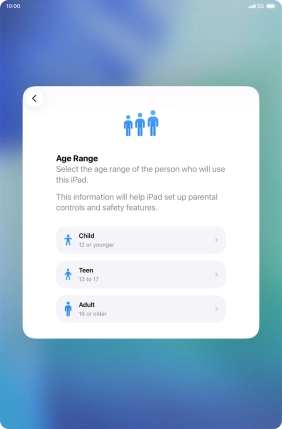 If the tablet will be used by a child, follow the instructions on the screen to set up the tablet for the child.