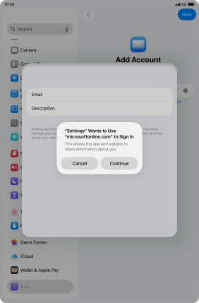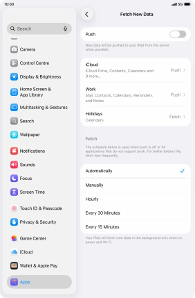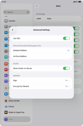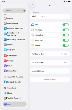 Press the required email account and follow the instructions on the screen to select settings for the specific account.