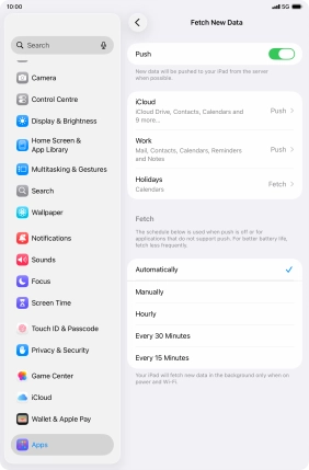 Press the indicators next to the required data types to turn synchronisation of each data type on or off.