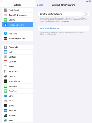 Turn Sensitive Content Warning on your Apple iPad Pro 10.5 iPadOS 17 on or off