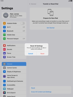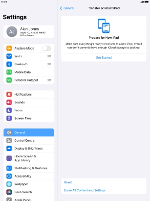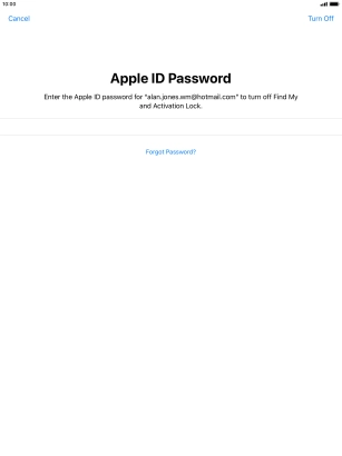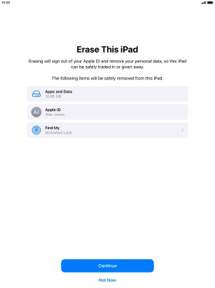 Key in the password for your Apple ID and press Erase iPad. Wait a moment while the factory default settings are restored. Follow the instructions on the screen to set up your tablet and prepare it for use.