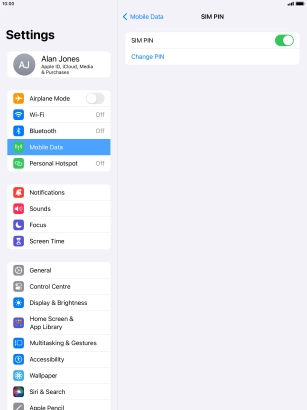 Press the indicator next to "SIM PIN" to turn the function on or off.