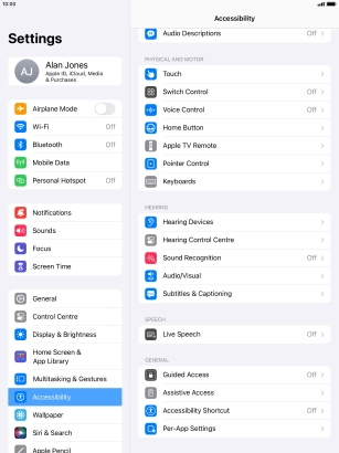 You can select different settings for tablet interaction control, e.g. AssistiveTouch and voice control making it easier to navigate your tablet.
