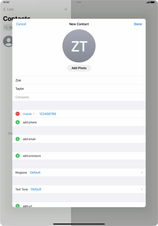 Create contact on your Apple iPad Pro 11 (2020) iPadOS 17