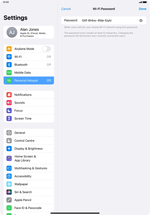 To use your tablet as a personal hotspot, you need to turn on the function and establish a connection from the other device to your tablet's hotspot.
