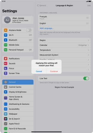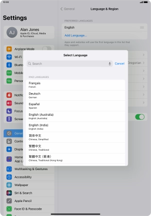 Select language on your Apple iPad Pro 11 (2021) iPadOS 17