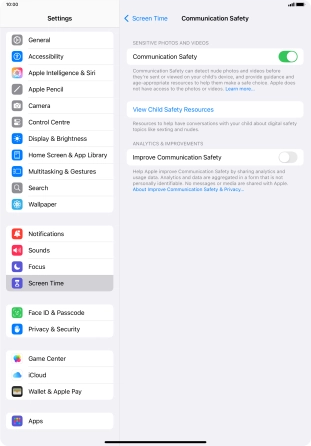 Turn Communication Safety on your Apple iPad Pro 11 (2022) iPadOS 18 on or off