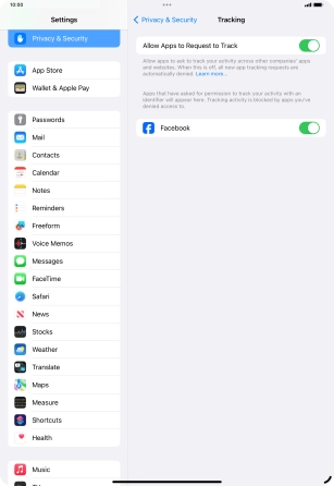 Press the indicator next to "Allow Apps to Request to Track" to turn the function on or off.