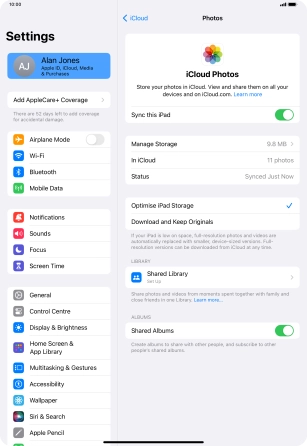 Synchronise the contents of your Apple iPad Pro 11 (2024) iPadOS 17 using iCloud