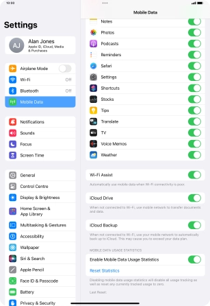 Press the indicator next to "Wi-Fi Assist" to turn the function on or off.