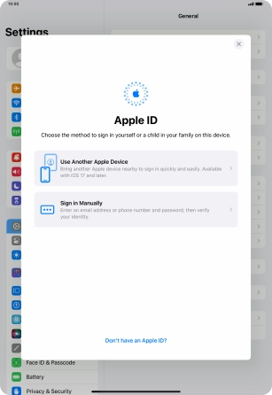 If you don t have an Apple ID, press Forgot password or don't have an Apple ID? and follow the instructions on the screen to create an Apple ID.