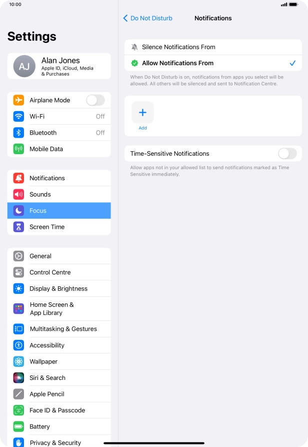 Press the indicator next to "Time-Sensitive Notifications" to turn display of timed notifications on or off when Do Not Disturb is turned on.
