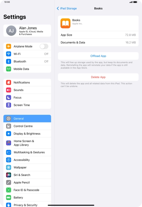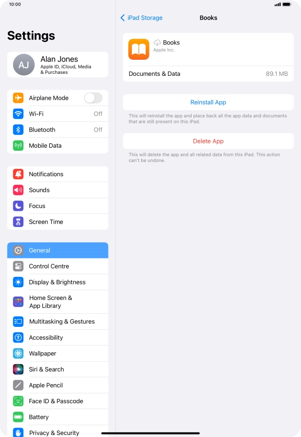 When you use this method, all app settings and data are saved in the tablet memory and are restored when you reinstall the app from App Store on your tablet.