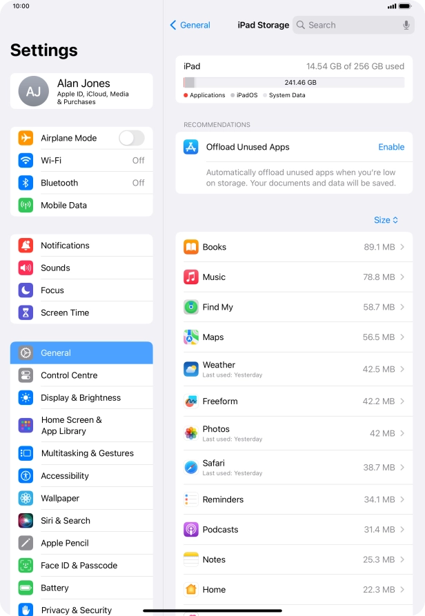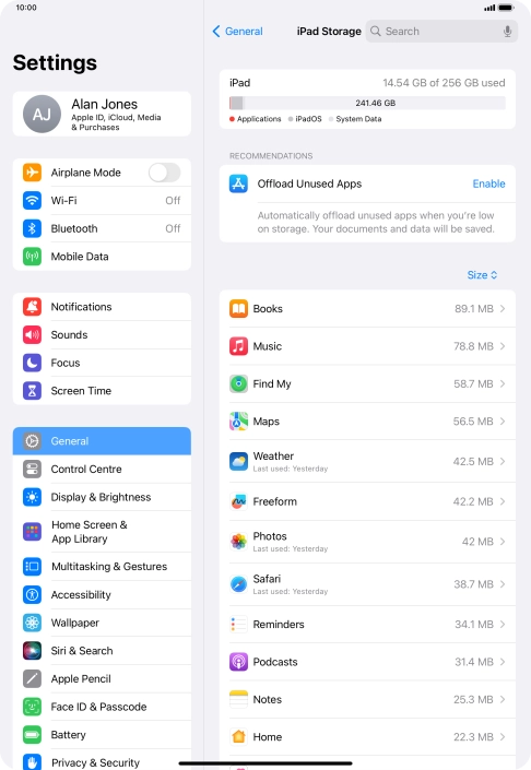 Press iPad Storage.