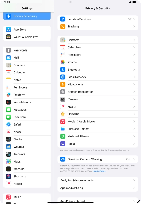 Press Privacy & Security.