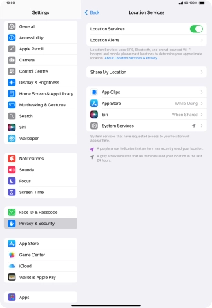 Turn GPS on your Apple iPad Pro 11 (2024) iPadOS 18 on or off