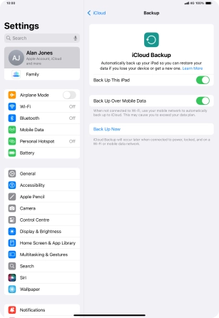 Back up the memory on your Apple iPad Pro 11 (2024) iPadOS 18 to iCloud