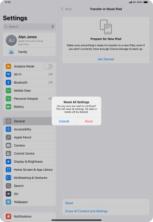 Key in the password for your Apple ID and press Turn Off. Wait a moment while the factory default settings are restored. Follow the instructions on the screen to set up your tablet and prepare it for use.