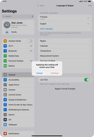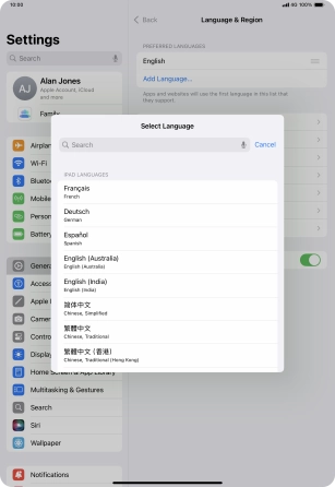 Select language on your Apple iPad Pro 11 (2024) iPadOS 18