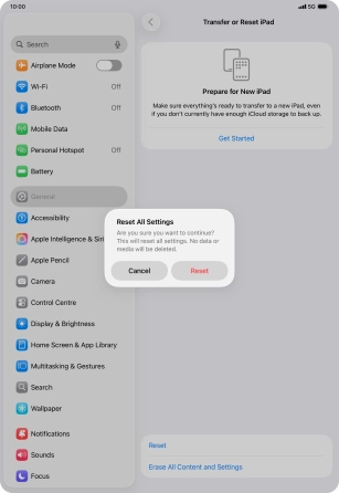Press Reset. Wait a moment while the factory default settings are restored. Follow the instructions on the screen to set up your tablet and prepare it for use.