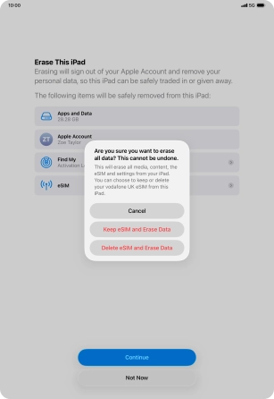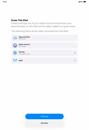 Key in the password for your Apple Account and press Turn Off. Wait a moment while the factory default settings are restored. Follow the instructions on the screen to set up your tablet and prepare it for use.