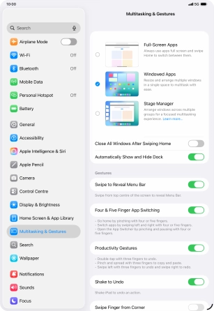 4. Select settings for multitasking with Windowed Apps