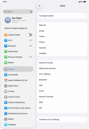 View EID number of your Apple iPad Pro 11 (2024) iPadOS 26