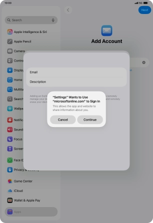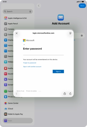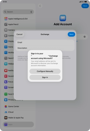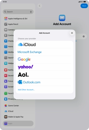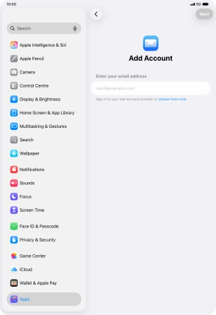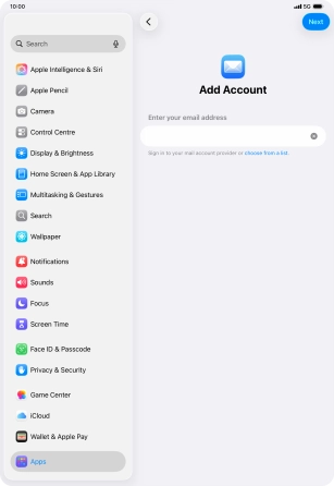 Press the required email account and follow the instructions on the screen to select settings for the specific account.