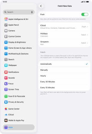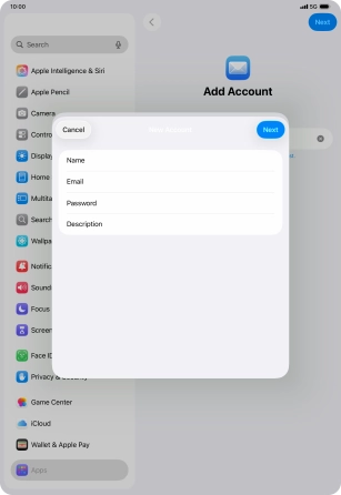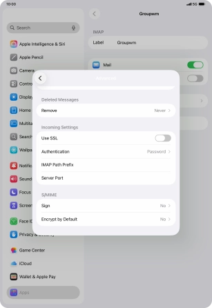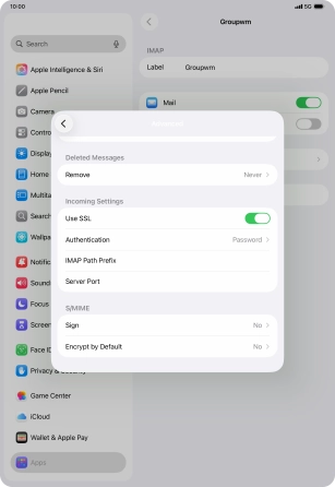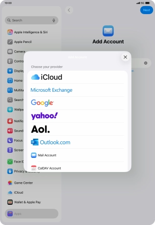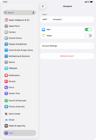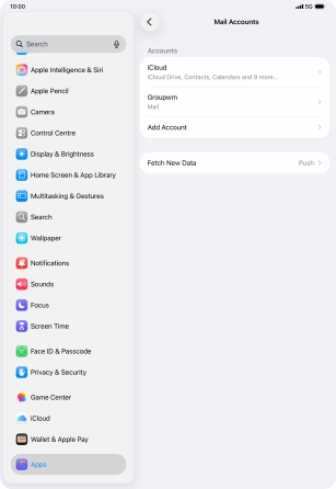 Press the required email account and follow the instructions on the screen to select settings for the specific account.