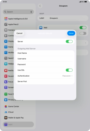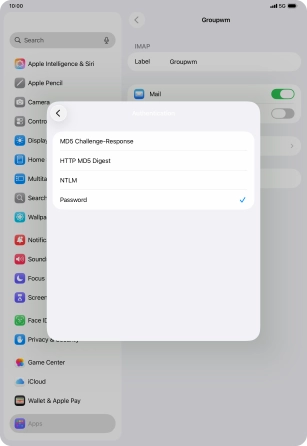 Press Password and key in the password for your email account.