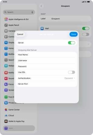 Press Host Name and key in the name of your email provider's outgoing server.