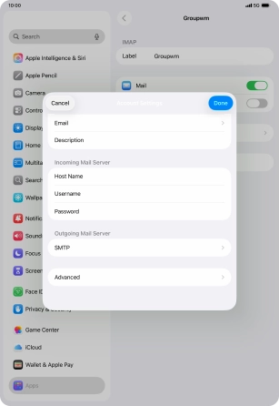 Press Username and key in the username for your email account.
