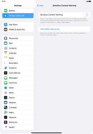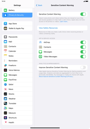 3. Turn Sensitive Content Warning for specific applications on or off