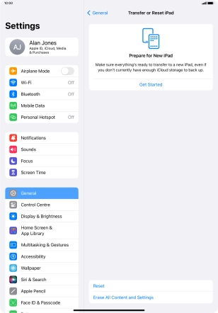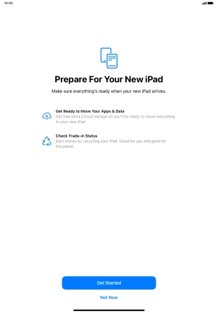 Press Get Started and follow the instructions on the screen to select the required settings and back up the tablet memory to iCloud. Once you've received your new iPad, you'll be able to restore the content of the iCloud backup.