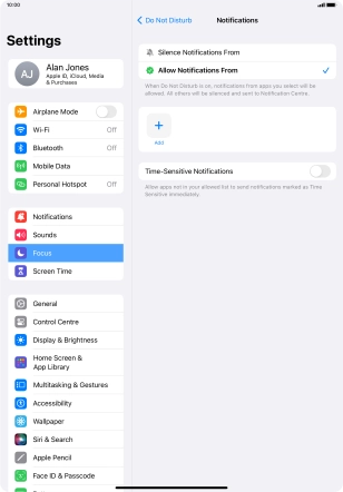 Press Apps and follow the instructions on the screen to select which apps you would like to receive notifications from when Do Not Disturb is turned on.
